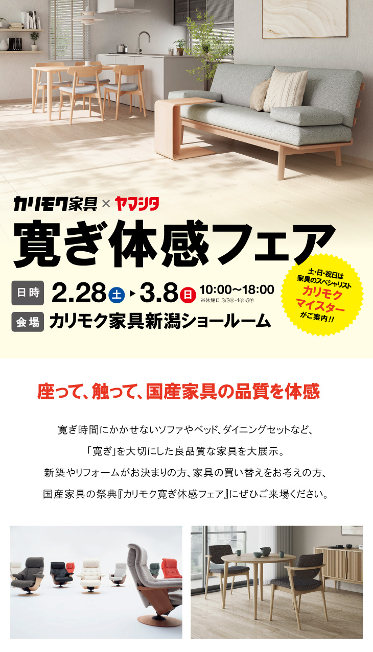 寛ぎ体感フェア ~カリモク家具新潟ショールーム~
